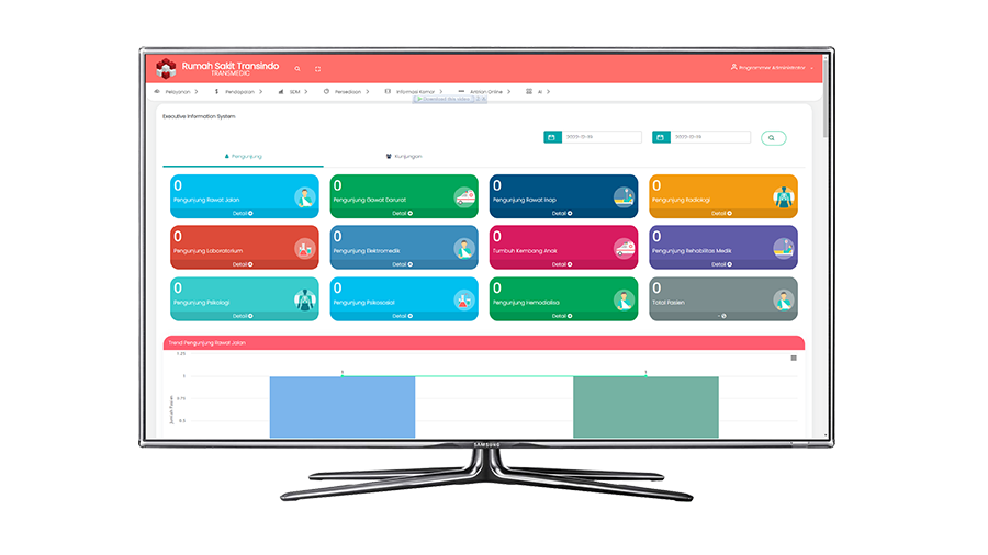 Sistem yang terintegrasi langsung dengan SIMRS - ERP ini dibuat untuk memudahkan manajemen memperoleh informasi terkini terkait kondisi rumah sakit dengan cepat dan mudah, sehingga dapat meningkatkan mutu pengendalian dan pengawasan kegiatan di Rumah sakit.